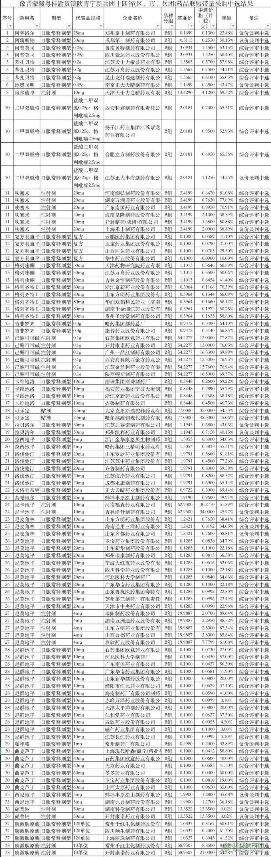 日前,由河南牽頭的豫晉蒙贛粵桂渝貴滇陜青寧新兵團(tuán)十四。▍^(qū)、市、兵團(tuán))藥品聯(lián)盟采購(gòu)正式落下帷幕,中選結(jié)果和中選企業(yè)供應(yīng)清單隨之公布。值得注意的是,較此前發(fā)布的擬中選結(jié)果,此次正式公布的中選產(chǎn)品數(shù)量有所變化,江蘇亞太的苯扎貝特,山東新華、江蘇長(zhǎng)江等4家藥企的復(fù)方血利平,云鵬醫(yī)藥、煙臺(tái)魯銀、四川迪菲特等5家藥企的曲克蘆丁這10個(gè)產(chǎn)品失去中選資格,其余中選產(chǎn)品信息與先前保持一致。