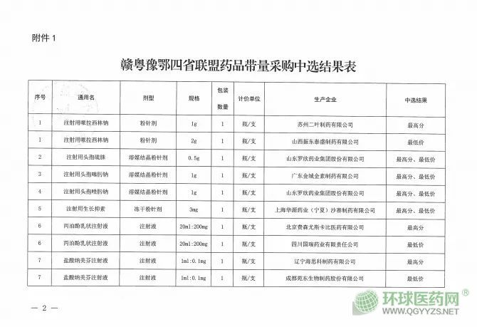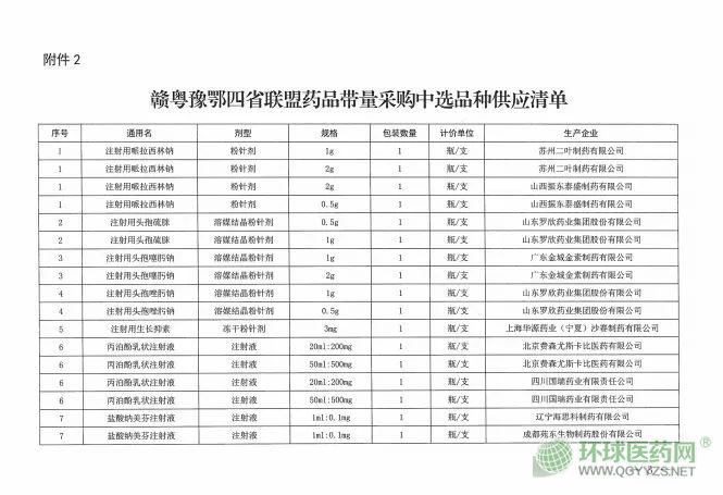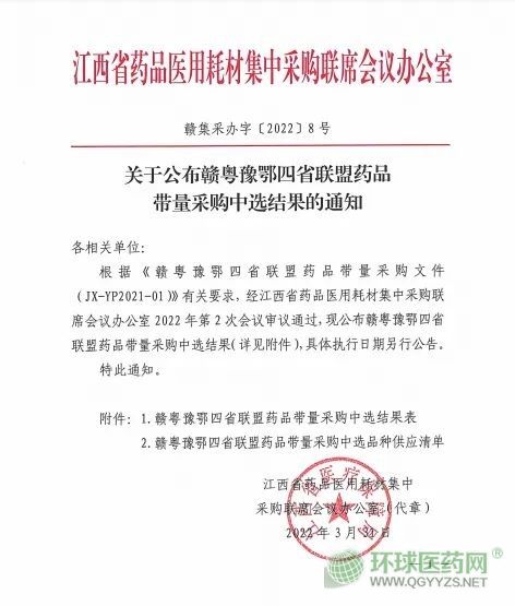 3月31日,贛粵豫鄂四省聯(lián)盟也發(fā)布了帶量采購(gòu)中選結(jié)果,具體如下: