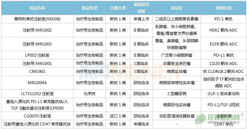 5款在研ADC藥物中,MRG002(HER2靶向ADC)、MRG003(EGFR靶向ADC)已步入II期臨床,MRG001(CD20靶向ADC)、CMG901(抗CLDN18.2靶向ADC)正在開展I期臨床。