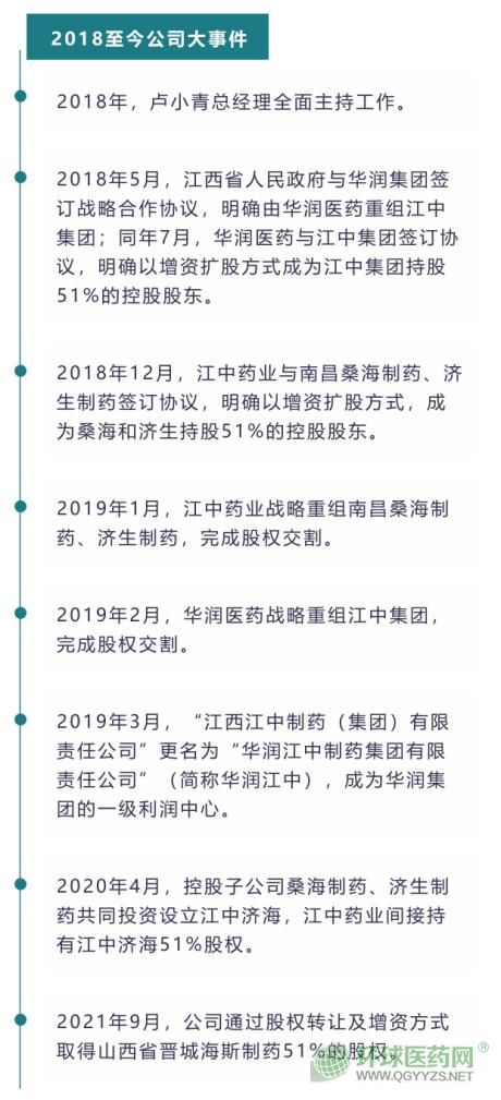 近日,OTC明星藥企江中藥業(yè)有最新動(dòng)態(tài),董事長(zhǎng)盧小青辭職,她在任4年間江中藥業(yè)完成了進(jìn)入華潤(rùn)系、并購(gòu)三大藥企、構(gòu)筑新的事業(yè)版圖;在2021年年報(bào)中,公司的首個(gè)生物藥1類新藥浮出了水面,公司將持續(xù)加碼胃腸治療領(lǐng)域,并借助華潤(rùn)系的助力,堅(jiān)守零售“一哥”的寶座。