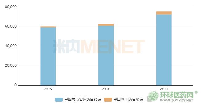 注:米內(nèi)網(wǎng)中國(guó)城市實(shí)體藥店終端競(jìng)爭(zhēng)格局?jǐn)?shù)據(jù)庫(kù)是覆蓋全國(guó)297個(gè)地市及以上城市實(shí)體藥店(不含縣鄉(xiāng)村實(shí)體藥店),對(duì)全品類進(jìn)行連續(xù)監(jiān)測(cè)的放大版城市實(shí)體藥店數(shù)據(jù)庫(kù)。米內(nèi)網(wǎng)中國(guó)網(wǎng)上藥店終端競(jìng)爭(zhēng)格局是覆蓋全國(guó)所有網(wǎng)上藥店,對(duì)全品類進(jìn)行連續(xù)監(jiān)測(cè)的放大版網(wǎng)上藥店銷售數(shù)據(jù)庫(kù)。上述銷售額以產(chǎn)品在終端的平均零售價(jià)計(jì)算。