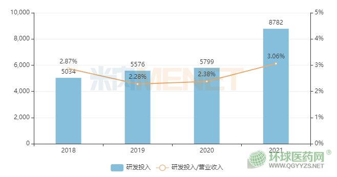 據(jù)年報(bào)資料顯示,2018-2019年江中藥業(yè)的研發(fā)投入在5000萬(wàn)元以上,主要聚焦中醫(yī)藥領(lǐng)域,重點(diǎn)進(jìn)行新產(chǎn)品的開發(fā)及產(chǎn)品升級(jí),同時(shí)進(jìn)行特殊醫(yī)學(xué)用途配方食品開發(fā)研究;2020年的在研項(xiàng)目中開始布局中醫(yī)經(jīng)典名方等新藥開發(fā);2021年研發(fā)投入漲至8000萬(wàn)元水平,增長(zhǎng)率超過(guò)51%,在研項(xiàng)目涉及生物藥1類新藥。