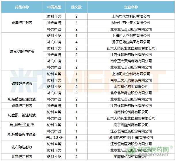 4個(gè)品種暫為獨(dú)家過(guò)評(píng),包括北陸藥業(yè)的釓噴酸葡胺注射液、恒瑞醫(yī)藥的碘佛醇注射液、海融制藥的瑞加諾生注射液、科倫藥業(yè)的釓特醇注射液。