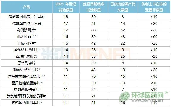 表1:2021年BE試驗(yàn)數(shù)量TOP14產(chǎn)品圖片