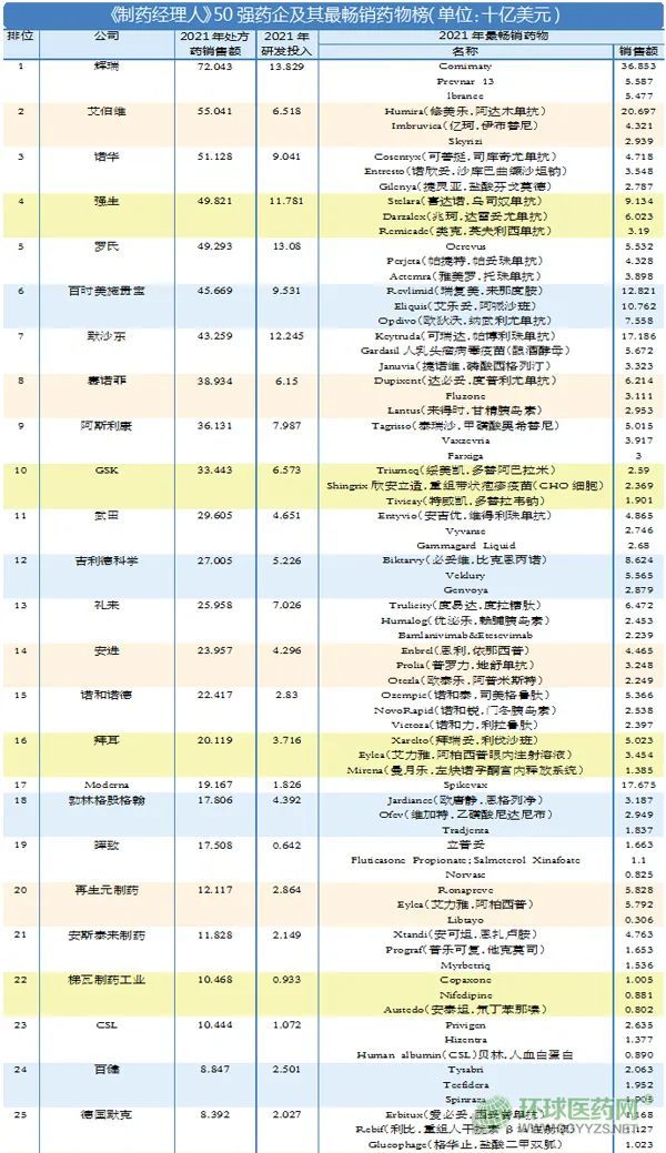 今年的榜單是連續(xù)第22次發(fā)布,《制藥經(jīng)理人》再次與生命科學(xué)市場情報機(jī)構(gòu)Evaluate公司合作,通過后者的服務(wù)品牌EvaluatePharma列出了制藥公司2021年的全年藥品收入情況。