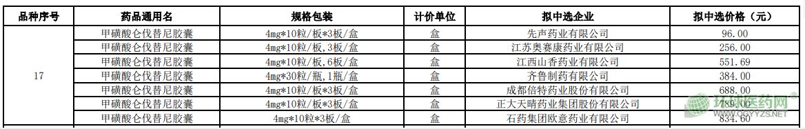 事實(shí)上,本輪國(guó)采共有10家企業(yè)手握侖伐替尼入場(chǎng),先聲藥業(yè)、奧賽康、正大天晴、齊魯制藥等7家企業(yè)中標(biāo),其中先聲藥業(yè)以3.2元/顆(規(guī)格4mg)的最低價(jià)中標(biāo),與集采給定的108元/顆的限價(jià)相比,該價(jià)格大幅下降97%。降價(jià)幅度之大,令人驚嘆。