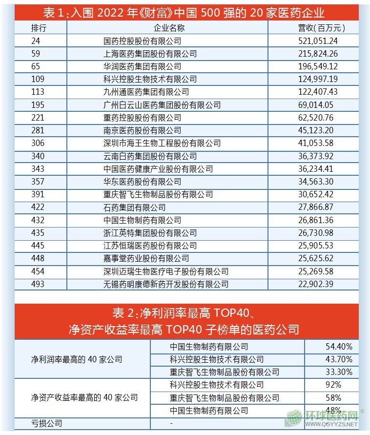相較之下,《財(cái)富》500強(qiáng)2021年榜單醫(yī)藥企業(yè)共有19家。2022年榜單里新進(jìn)了科興控股、重慶智飛和藥明康德3家企業(yè),而瑞康醫(yī)藥和人福醫(yī)藥2家公司落榜,總體凈增1家企業(yè)入榜。