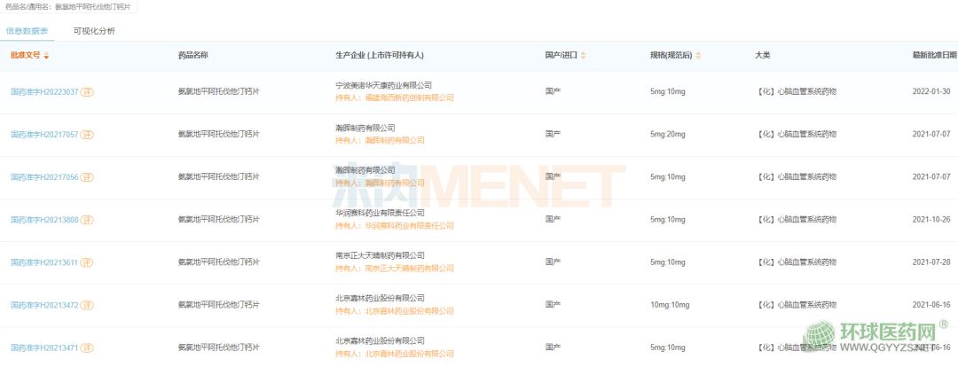 氨氯地平阿托伐他汀鈣片于2004年在美國上市,于2008年在中國批準(zhǔn)上市,其銷售額峰值超過5億美元。2008年4月,NMPA批準(zhǔn)輝瑞的氨氯地平阿托伐他汀鈣片(商品名:多達(dá)一)注冊,目前批準(zhǔn)進(jìn)口有3種規(guī)格:5mg/10mg、5mg/20mg和5mg/40mg。