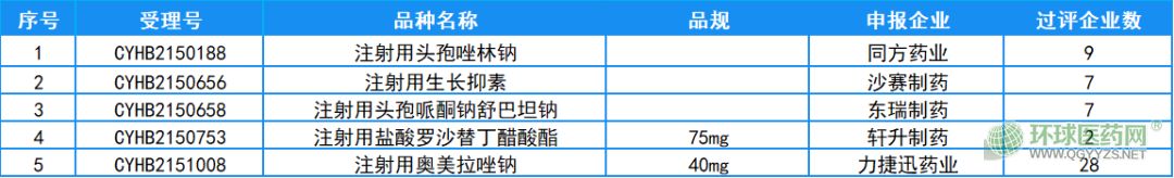 本批共5品種、5品規(guī)通過一致性評(píng)價(jià),均為注射劑,分別是:同方藥業(yè)的注射用頭孢唑林鈉、沙賽制藥的注射用生長(zhǎng)抑素、東瑞制藥的注射用頭孢哌酮鈉舒巴坦鈉、軒升制藥的注射用鹽酸羅沙替丁醋酸酯和力捷迅藥業(yè)的注射用奧美拉唑鈉。