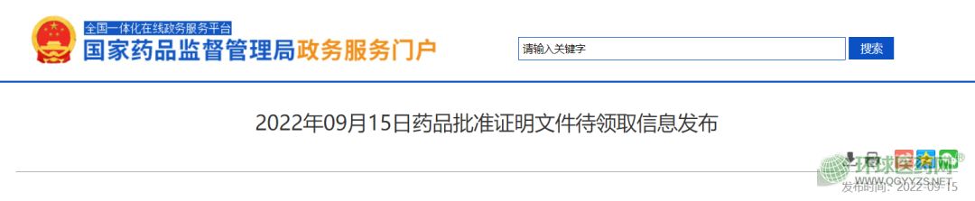 9月15日,國(guó)家藥監(jiān)局發(fā)布了最新藥品批準(zhǔn)證明文件。