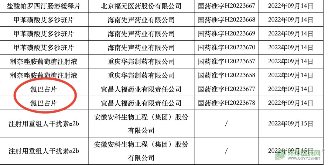 國家藥監(jiān)局官網顯示,氯巴占獲藥品批準