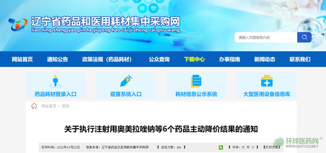 近日,遼寧省藥品和醫(yī)用耗材集中采購網(wǎng)發(fā)布《關(guān)于執(zhí)行注射用奧美拉唑鈉等6個(gè)藥品主動(dòng)降價(jià)結(jié)果的通知》。
