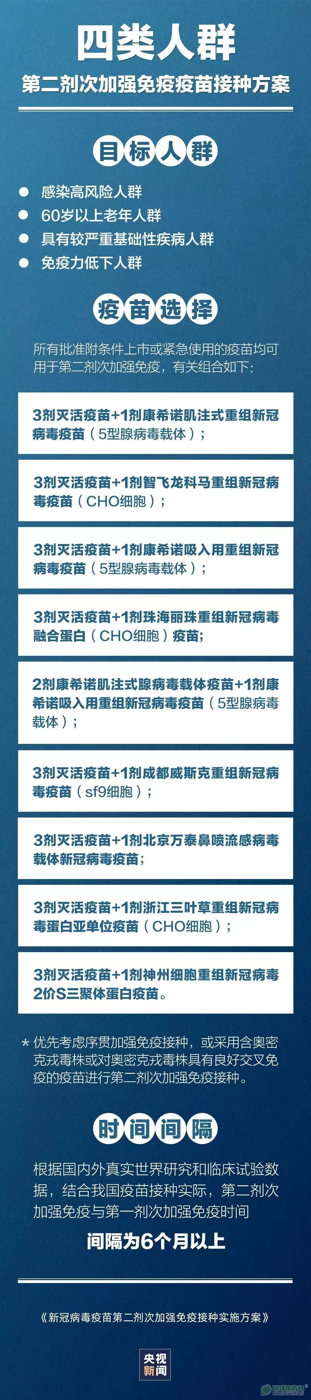 12月14日,國家衛(wèi)健委官網發(fā)布《新冠病毒疫苗第二劑次加強免疫接種實施方案》。方案指出,現(xiàn)階段,可在第一劑次加強免疫接種基礎上,在感染高風險人群、60歲以上老年人群、具有較嚴重基礎性疾病人群和免疫力低下人群中開展第二劑次加強免疫接種。