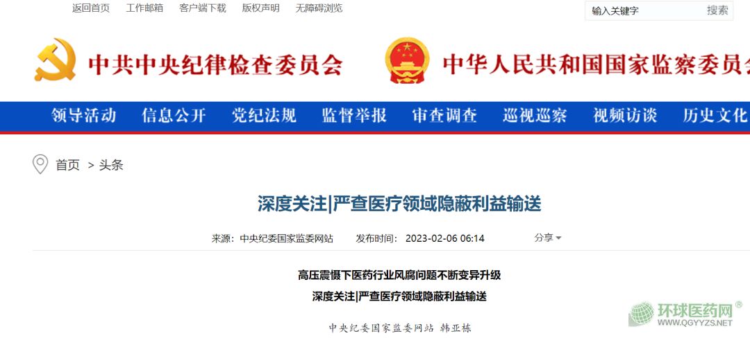 2023年2月6日,中紀委網(wǎng)站訊,深度關(guān)注|嚴查醫(yī)療領(lǐng)域隱蔽利益輸送。通報稱,隨著對商業(yè)賄賂案件查處力度不斷加大,一些醫(yī)藥企業(yè)采取更為隱蔽、復(fù)雜的手段,為其賄賂行為披上“合法外衣”。