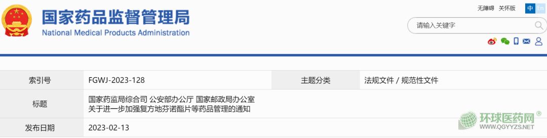 近日,國家藥監(jiān)局等多部門發(fā)布《國家藥監(jiān)局綜合司 公安部辦公廳 國家郵政局辦公室關(guān)于進(jìn)一步加強(qiáng)復(fù)方地芬諾酯片等藥品管理的通知》。