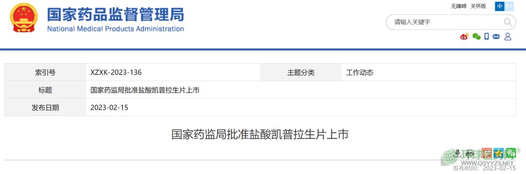據(jù)國家藥監(jiān)局網(wǎng)站2023年2月15日消息,近日,國家藥品監(jiān)督管理局批準(zhǔn)江蘇柯菲平醫(yī)藥股份有限公司申報(bào)的1類創(chuàng)新藥鹽酸凱普拉生片上市。該藥品適用于十二指腸潰瘍和反流性食管炎的治療。