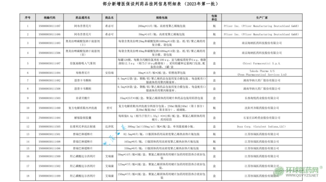 部分新增醫(yī)保談判藥品掛網(wǎng)信息明細(xì)表(2023年第1批)