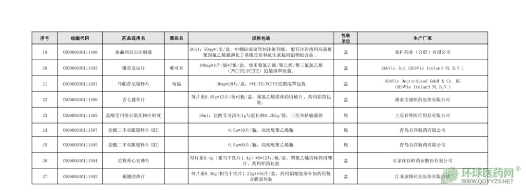阿布昔替尼片、奧美拉唑碳酸氫鈉干混懸劑(Ⅰ)、倍氯福格吸入氣霧劑、布格替尼片 、恩替卡韋顆粒、非諾貝酸片、解郁除煩膠囊、普瑞巴林緩釋片、羥乙磺酸達(dá)爾西利片、曲前列尼爾注射液、烏帕替尼緩釋片、鹽酸艾司洛爾氯化鈉注射液、鹽酸二甲雙胍緩釋片(Ⅲ)、益腎養(yǎng)心安神片等;