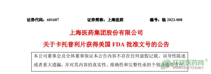 近日,兩藥企分別發(fā)布了產(chǎn)品海外上市進(jìn)展公告,具體為上海醫(yī)藥申報(bào)的卡托普利片獲得了FDA發(fā)放的批準(zhǔn)文號(hào)、匯宇制藥申報(bào)的普樂(lè)沙福注射液獲得了法國(guó)上市許可。