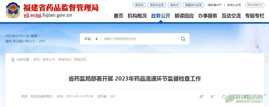 3月13日,福建省藥監(jiān)局發(fā)布《省藥監(jiān)局部署開展2023年藥品流通環(huán)節(jié)監(jiān)督檢查工作》。
