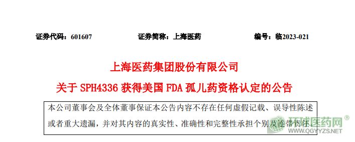 2023年3月29日,上海醫(yī)藥集團(tuán)股份有限公司發(fā)布公告稱,其自主研發(fā)的創(chuàng)新藥SPH4336用于脂肪肉瘤適應(yīng)癥獲得美國(guó)食品藥品監(jiān)督管理局孤兒藥資格認(rèn)定。