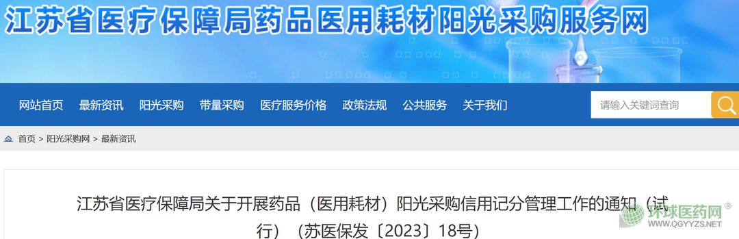 日前,江蘇省藥品醫(yī)用耗材陽光采購服務(wù)網(wǎng)發(fā)布《江蘇省醫(yī)療保障局關(guān)于開展藥品(醫(yī)用耗材)陽光采購信用記分管理工作的通知(試行)》,通過建立全省藥品陽光采購信用記分管理機(jī)制,規(guī)范醫(yī)藥企業(yè)陽光采購行為,引導(dǎo)醫(yī)藥企業(yè)陽光交易、公平競(jìng)爭(zhēng)、誠(chéng)信經(jīng)營(yíng)。