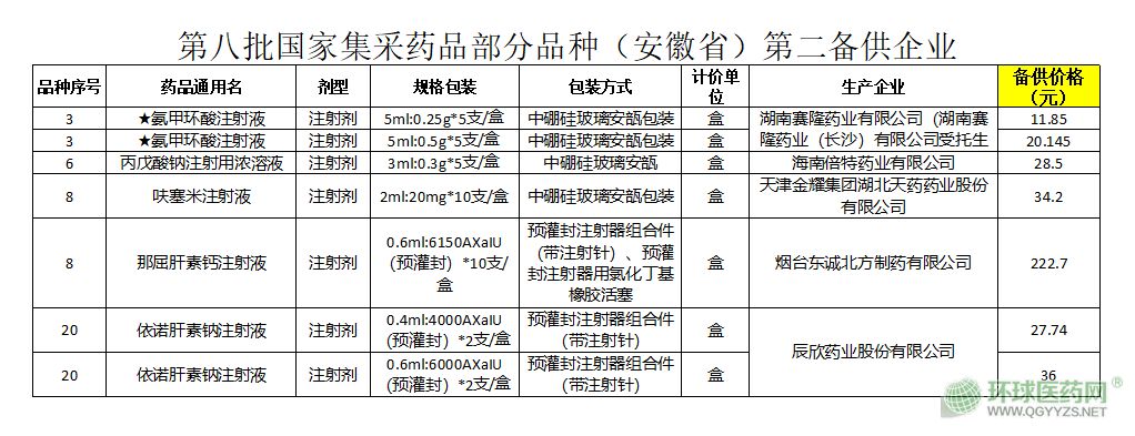 今日,安徽省醫(yī)藥價格和集中采購中心發(fā)布通知,表示按照國家聯采辦和省局要求,近期開展了第八批國家組織藥品集中采購 5 個品種第二備供企業(yè)確認工作,經報省局同意,現將第二備供企業(yè)進行公布。