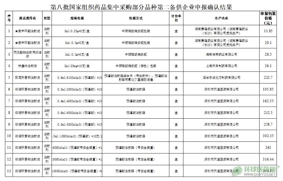 內蒙古今日也發(fā)布了通知,表示完成了氨甲環(huán)酸注射劑等5個品種第二備供企業(yè)及掛網價格申報確認工作,現予以公布。