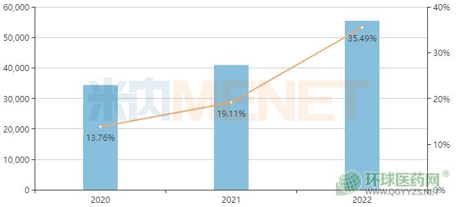 米內(nèi)網(wǎng)數(shù)據(jù)顯示,乳酸鈉林格注射液在我國(guó)院內(nèi)近幾年的市場(chǎng)呈持續(xù)擴(kuò)張趨勢(shì),其2022年在中國(guó)城市公立醫(yī)院、縣級(jí)公立醫(yī)院、城市社區(qū)中心以及鄉(xiāng)鎮(zhèn)衛(wèi)生院(簡(jiǎn)稱中國(guó)公立醫(yī)療機(jī)構(gòu))終端的銷售額超過5億元,同比增長(zhǎng)35.49%。