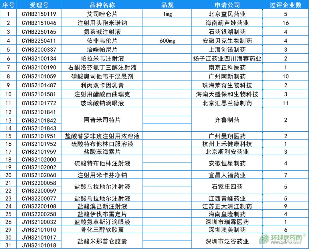 替莫唑艾司唑侖片胺膠囊和鹽酸烏拉地爾注射液分別新增1家(北京益民藥業(yè))和2家企業(yè)(江西青峰藥業(yè)、石家莊四藥)獲批并視同過評,最新過評企業(yè)數(shù)已達(dá)五家,滿足集采門檻。