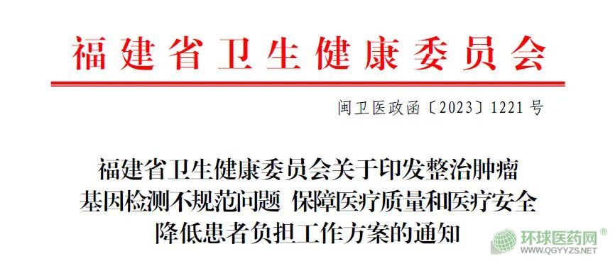 6 月 30 日,福建省衛(wèi)健委發(fā)布《關(guān)于整治腫瘤基因檢測不規(guī)范問題保障醫(yī)療質(zhì)量和醫(yī)療安全降低患者負(fù)擔(dān)工作方案》,對腫瘤患者基因檢測管理,規(guī)范腫瘤藥物使用做出工作安排。