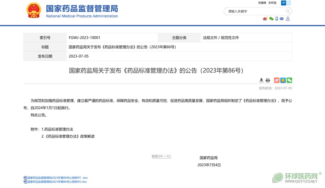 7月5日,國家藥監(jiān)局消息,NMPA發(fā)布的藥品標準管理辦法,自2024年1月1日起施行。
