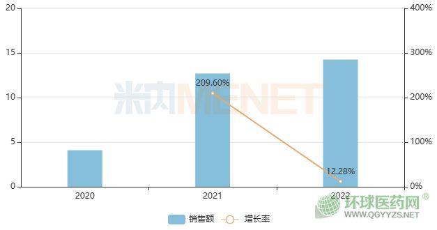 自上市以來,羅沙司他膠囊在中國市場的滲透率逐漸增加。米內網(wǎng)數(shù)據(jù)顯示,該產品2021年中國公立醫(yī)療機構終端銷售額超突破10億元大關后,2022年同比增長12.28%。