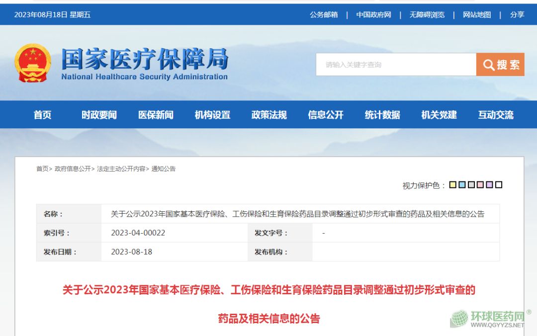 8月18日晚間,國家醫(yī)保局發(fā)布《關(guān)于公示2023年國家基本醫(yī)療保險(xiǎn)、工傷保險(xiǎn)和生育保險(xiǎn)藥品目錄調(diào)整通過初步形式審查的藥品及相關(guān)信息的公告》。