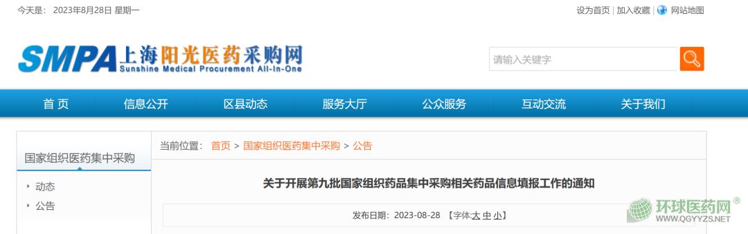 8月28日,上海陽光醫(yī)藥采購網(wǎng)發(fā)布《關(guān)于開展第九批國家組織藥品集中采購相關(guān)藥品信息填報工作的通知》,《通知》明確自2023年8月28日起,聯(lián)合采購辦公室開展第九批國家組織藥品集中采購相關(guān)藥品信息填報工作。