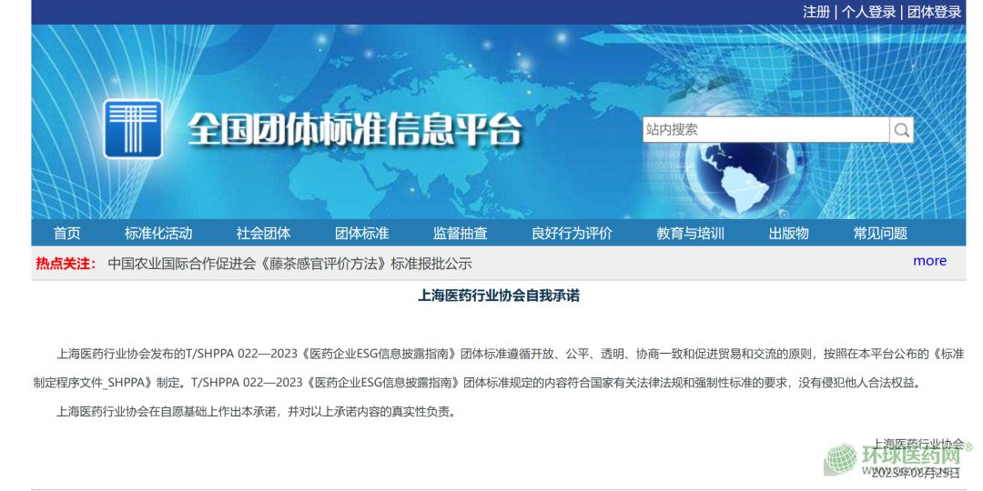 這是國內(nèi)首個醫(yī)藥行業(yè)的ESG信息披露團(tuán)體標(biāo)準(zhǔn)(標(biāo)準(zhǔn)編號為T/SHPPA022-2023)。