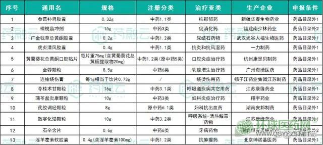 在《通過初步形式審查的目錄外藥品名單》中,有13個中成藥獨家品種通過初步形式審查,包括華春生物的參葛補腎膠囊、南少林藥業(yè)的橄欖晶沖劑、人福醫(yī)藥的廣金錢草總黃酮膠囊、一力制藥的虎貞清風(fēng)膠囊、康恩貝制藥的黃蜀葵花總黃酮口腔貼片、揚子江藥業(yè)的連榆燒傷膏、康緣藥業(yè)的苓桂術(shù)甘顆粒等。