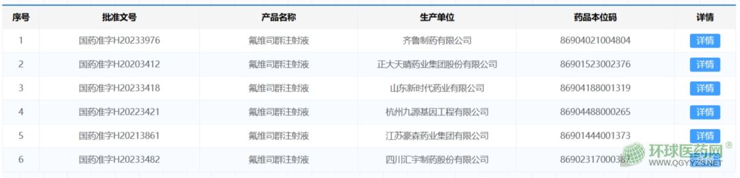 據(jù)國家藥品監(jiān)督管理局(NMPA)官網(wǎng)查詢顯示,除原研廠商阿斯利康外,目前國內(nèi)已有齊魯制藥、正大天晴藥業(yè)、山東新時代藥業(yè)、杭州九源基因工程、江蘇豪森藥業(yè)、四川匯宇制藥6家企業(yè)的氟維司群注射液獲批過評。