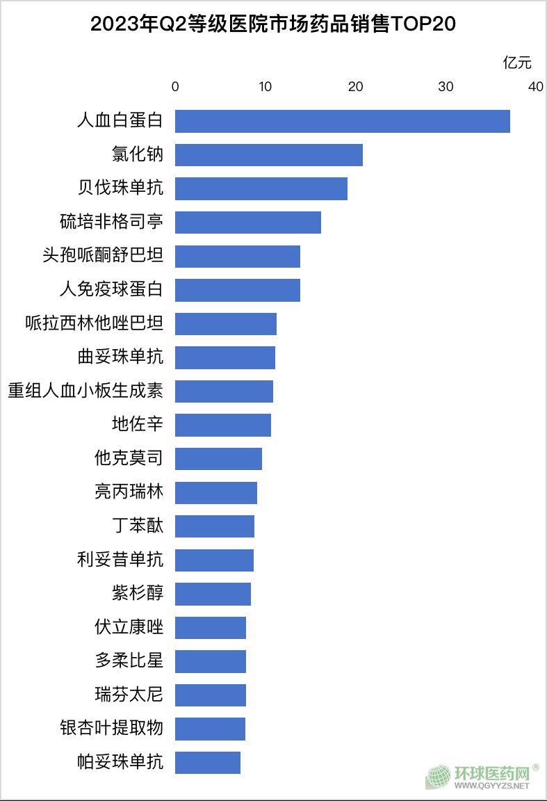 人血白蛋2023年Q2銷售額超37億,比第二名氯化鈉領(lǐng)先16億,去年差距12億。
