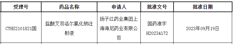 近日,國家藥品監(jiān)督管理局(NMPA)官網(wǎng)發(fā)布了最新一批藥品獲批信息,揚子江藥業(yè)集團(tuán)上海海尼藥業(yè)的鹽酸艾司洛爾氯化鈉注射液獲批上市。