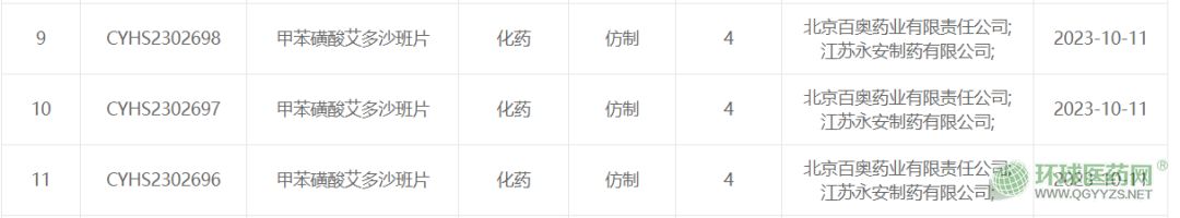 10月11日,中國(guó)國(guó)家藥監(jiān)局藥品審評(píng)中心(CDE)官網(wǎng)顯示,北京百奧藥業(yè)和齊魯制藥兩家企業(yè)以仿制4類化藥提交的甲苯磺酸艾多沙班片上市申請(qǐng)已獲受理。2022年9年,海南先聲藥業(yè)的甲苯磺酸艾多沙班片率先獲批,拿下首仿。