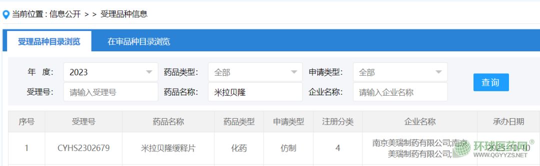 10月12日,中國國家藥監(jiān)局藥品審評(píng)中心(CDE)官網(wǎng)顯示,南京美瑞制藥以仿制4類化藥提交的米拉貝隆緩釋片上市申請已獲受理。目前,國內(nèi)已有4家企業(yè)的米拉貝隆緩釋片仿制藥獲批上市。