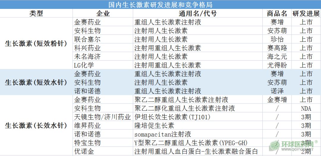 雖然目前總體市場仍由短效生長激素主導(dǎo),但由于短效生長激素治療要求長時間每天注射,患者依從性較差,長效水針劑已經(jīng)成為企業(yè)研發(fā)的熱門方向。