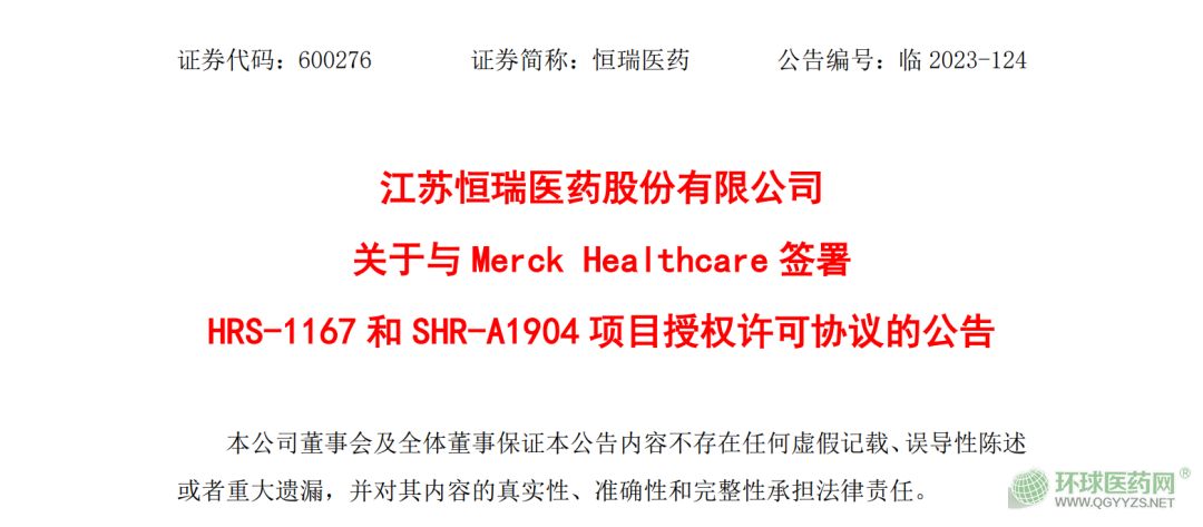 10月30日,恒瑞醫(yī)藥宣布與總部位于德國(guó)默克公司就其自主研發(fā)的PARP1 抑制劑HRS-1167達(dá)成獨(dú)家許可協(xié)議。