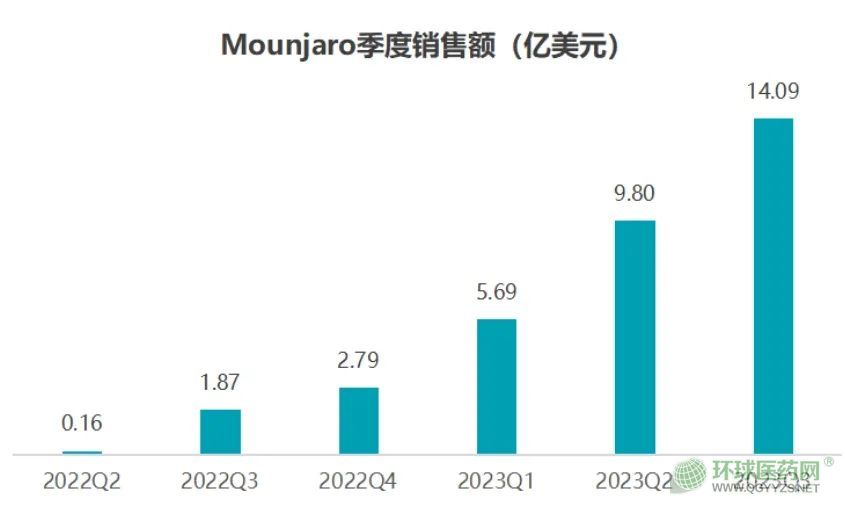 自去年以來,美國GLP-1藥物處方激增,主要受Ozempic、Mounjaro和Wegovy的推動。替爾泊肽(Mounjaro)于2022年5月獲批治療糖尿病,上市后放量迅速,今年前三季度銷售額30億美元,其中三季度單季度銷售額14億美元,較第二季度銷售額增長43.8%。