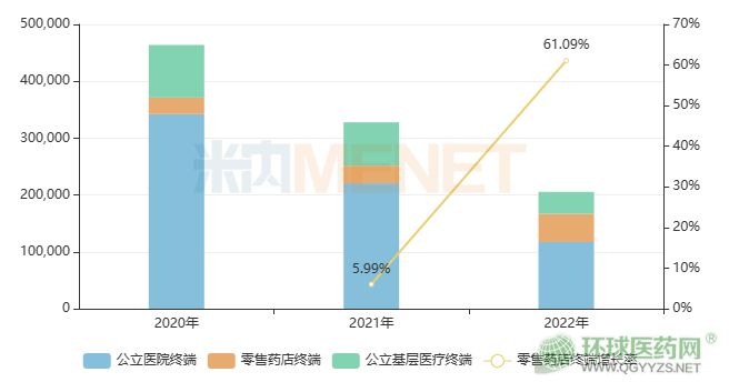 不過,受國采降價影響,近兩年氨溴索在公立醫(yī)院終端(城市公立醫(yī)院+縣級公立醫(yī)院)和公立基層醫(yī)療終端(城市社區(qū)中心+鄉(xiāng)鎮(zhèn)衛(wèi)生院)的銷售額呈下滑態(tài)勢。