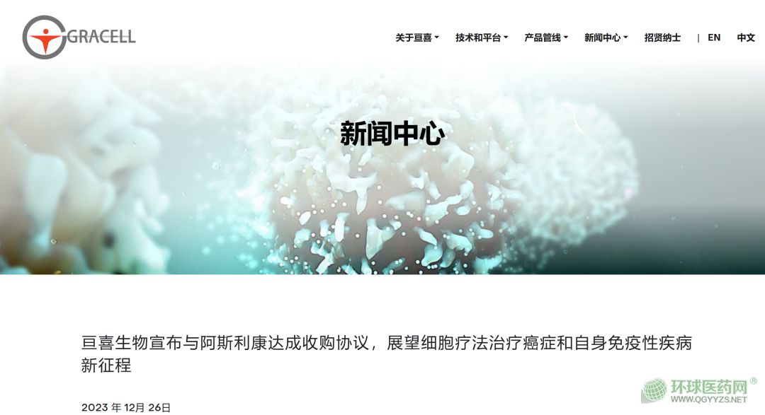 12月26日,國內(nèi)細(xì)胞治療企業(yè)亙喜生物宣布與阿斯利康達(dá)成收購協(xié)議。