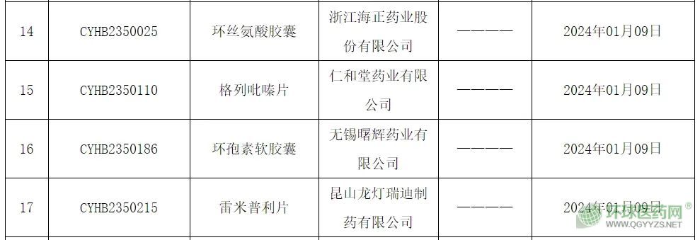 2024年1月11日,國家藥監(jiān)局官網(wǎng)發(fā)布藥品批準(zhǔn)證明文件,本批共7品種、7品規(guī)藥品補(bǔ)充申請獲批,通過一致性評價。