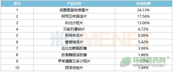 2022年中國公立醫(yī)療機構(gòu)終端口服抗血栓形成藥化藥產(chǎn)品TOP10