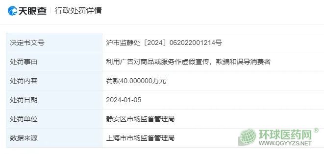 中國網(wǎng)財經(jīng)2024年1月17日訊(記者李晚),據(jù)天眼查app,近日,藥企百濟神州因違法發(fā)布處方藥廣告被罰款40萬元。